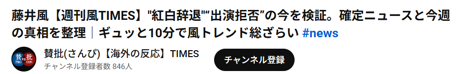こちらのMASAさんのチャンネルでも、藤井風さんの2025年紅白歌合戦出場辞退に関するニュースに対して、注意喚起の動画がアップされていました。