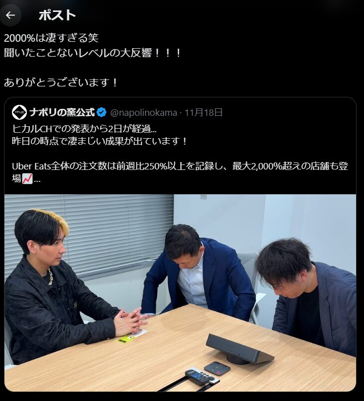 11月16日Youtuberヒカルがナポリの窯の取締役に就任したことを発表しました!